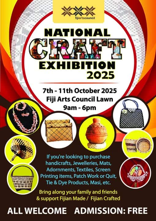 Event Date: 7 Oct 2025Come and purchase a wide variety of handicrafts, jewelry, fabric and garments, mats, masi and more. Date: 7th – 11th October 2025 Venue: Fiji Arts Council Office, beside FDB bank, Suva