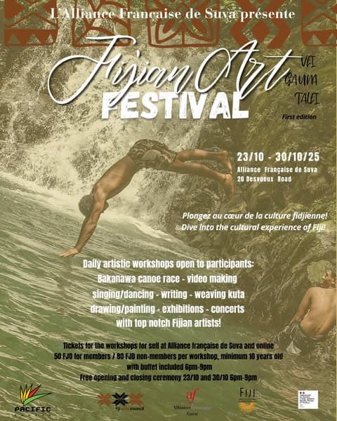 Event Date: 23 Oct 2025Join L’Alliance Française de Suva for a Fijian Art Festival – Vei Gauna Talei! This week-long celebration (23/10 – 30/10/25) features daily workshops, concerts, exhibitions, and much more — all led by amazing Fijian artists. From the Bakanawa canoe race to weaving, painting, singing, dancing, writing, and video-making, there’s something for everyone aged 10 and […]