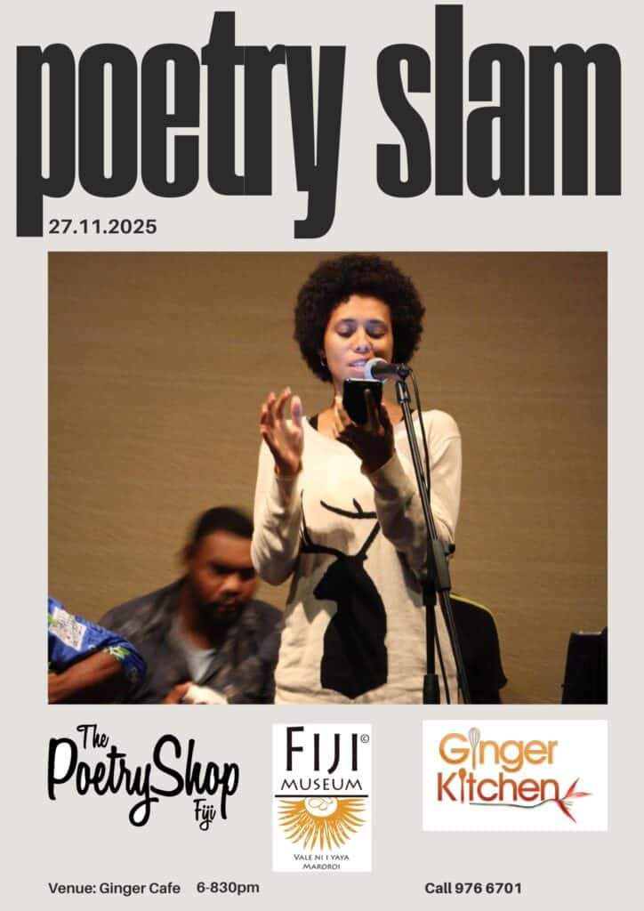 Event Date: 27 Nov 2025Join The Poetry Shop for the final Poetry Slam of 2025 happening Thursday, 27th November, 6–8:30pm at the Fiji Museum. Whether you’re a newbie poet or a past winner, this is your stage. Bring your new or old work, share your voice, and close out the year with rhythm and expression. Cash prizes for the […]