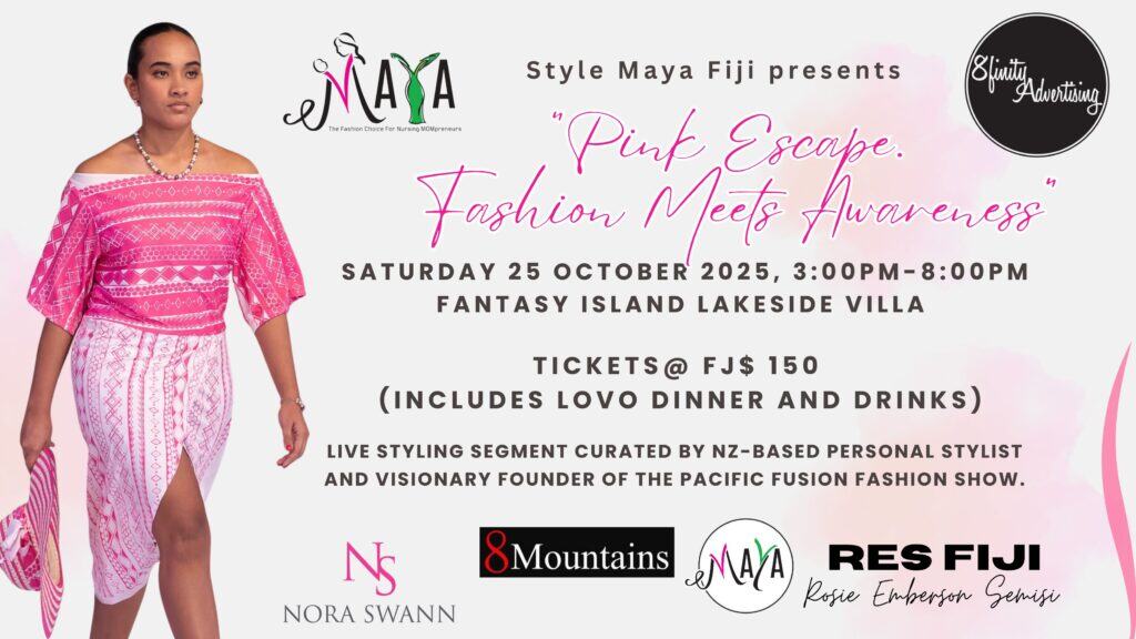 Event Date: 25 Oct 2025Style Maya Fiji Presents “Pink Escape: Fashion Meets Awareness” October 25, 2025 03:00 PM – 08:00 PM 10 Nuku Circle, Fantasy Island Live Styling Workshop by NZ-based Stylist NORA SWANN Visionary Founder of Pacific Fusion Fashion Show Runway Show by Fiji Fashion Designers: 8 Mountains, RES Fiji and Style Maya Fiji Cancer Awareness by Medical […]