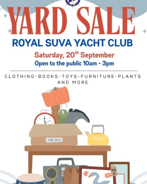 Event Date: 20 Sep 2025RSYC Members’ Yard Sale – 20th September! Calling all treasure hunters and bargain lovers! Join us at the Royal Suva Yacht Club on Friday, 20th September for our Members’ Yard Sale. A great chance to find second-hand boat gear, household items, plants, toys, and more all in one place! Date: Saturday, 20th September Location: Royal […]
