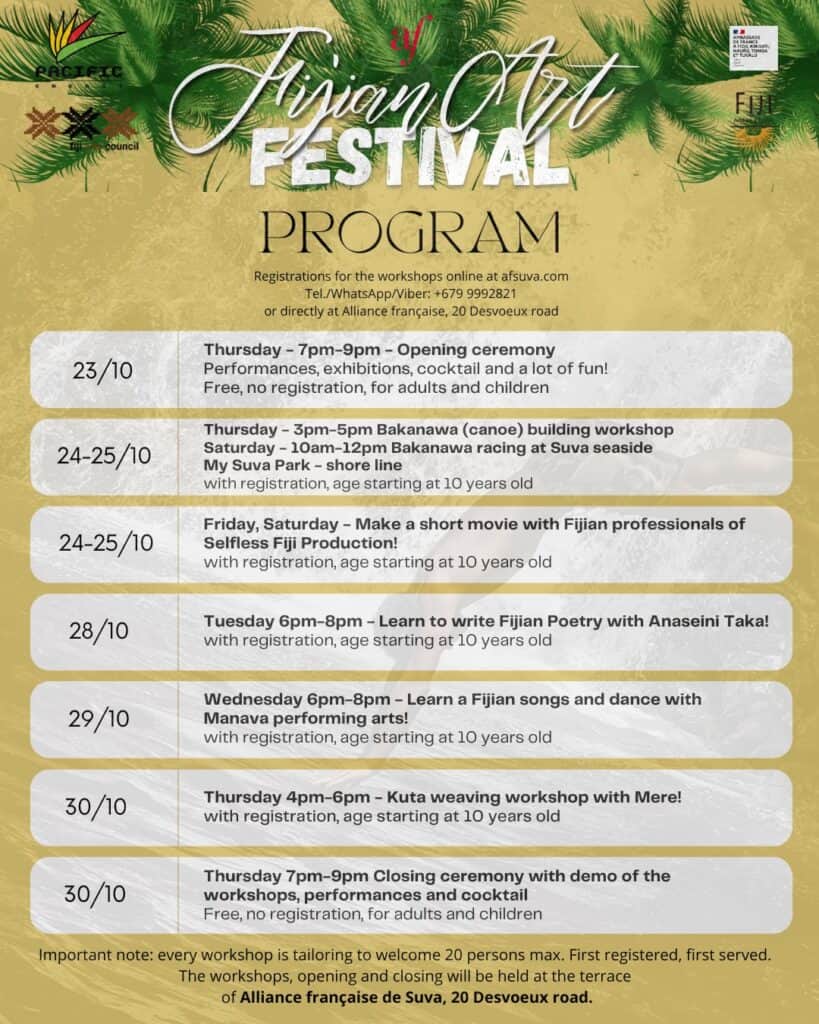 This week-long celebration (23/10 – 30/10/25) features daily workshops, concerts, exhibitions, and much more — all led by amazing Fijian artists.