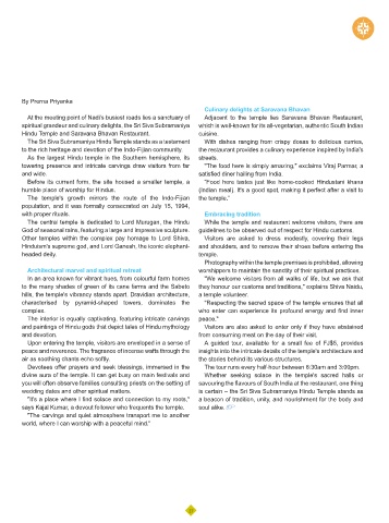 Hindu Temple and Saravana Bhavan Restaurant. cuisine.