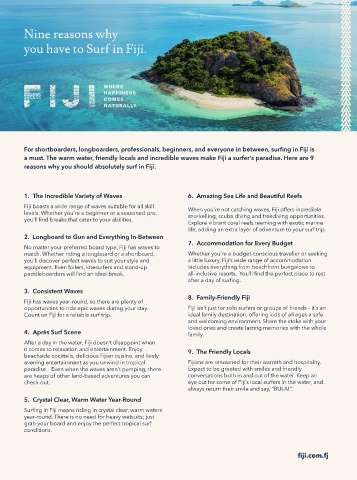 Fiji boasts a wide range of waves suitable for all skill When you’re not catching waves, Fiji offers incredible