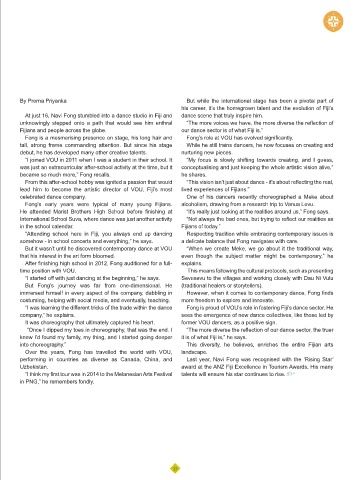 into choreography.” This diversity, he believes, enriches the entire Fijian arts