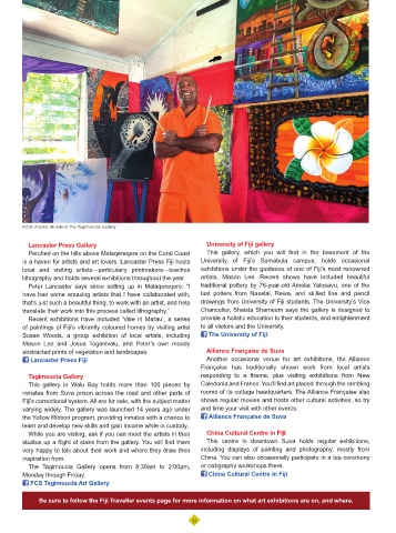 local and visiting artists—particularly printmakers—teaches exhibitions under the guidance of one of Fiji’s most renowned