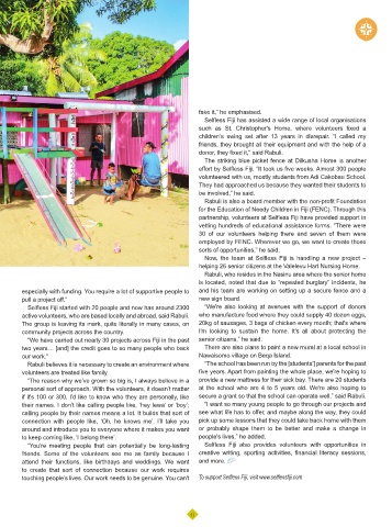 touching people’s lives. Our work needs to be genuine. You can't To support Selfless Fiji, visit www.selflessfiji.com