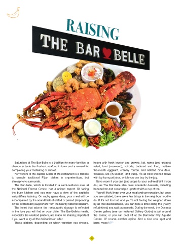 Saturdays at The Bar-Belle is a tradition for many families; a heave with fresh lobster and prawns, kai, nama (sea grapes)