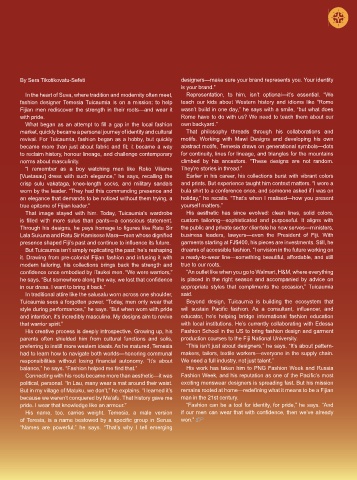 it. Drawing from pre-colonial Fijian fashion and infusing it with a ready-to-wear line—something beautiful, affordable, and still