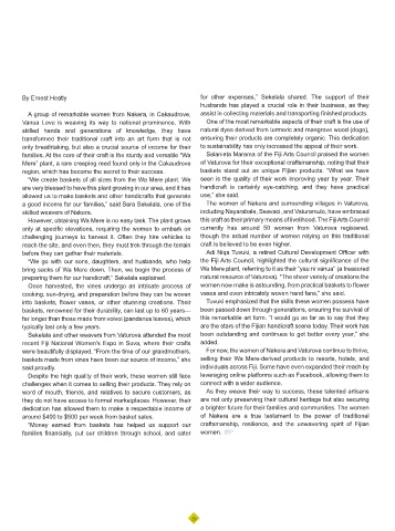families. At the core of their craft is the sturdy and versatile “Wa Salanieta Marama of the Fiji Arts Council praised the women