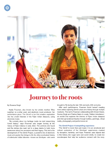 awareness about her ancestors and their legacy. This led to the cultural exploration of the Girmityas' experiences—marked