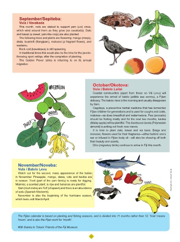 The Fijian calendar is based on planting and fishing seasons, and is divided into 11 months rather than 12. 'Vula' means