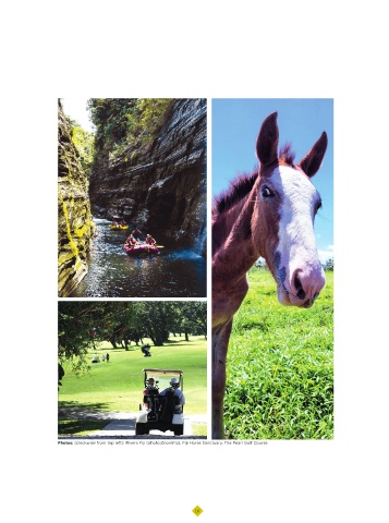 Photos: (clockwise from top left): Rivers Fiji (photo:ZoomFiji), Fiji Horse Sanctuary, The Pearl Golf Course 18