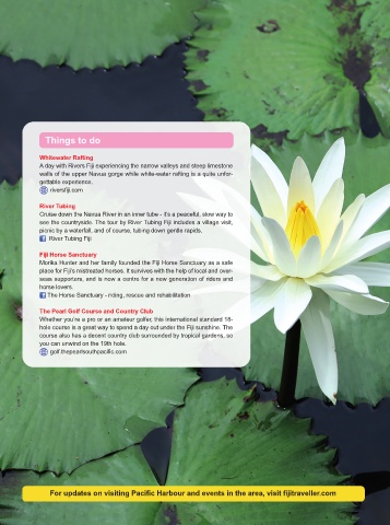 For updates on visiting Pacific Harbour and events in the area, visit fijitraveller.com