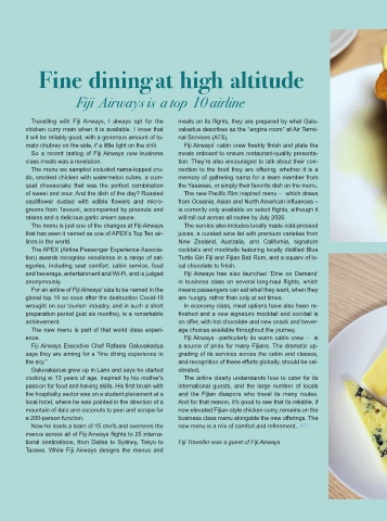 So a recent tasting of Fiji Airways new business meals onboard to ensure restaurant-quality presenta-