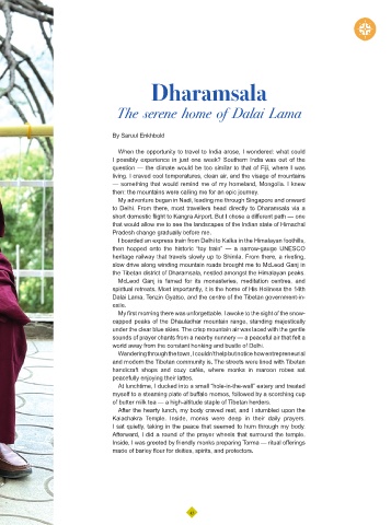 spiritual retreats. Most importantly, it is the home of His Holiness the 14th