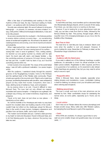 arrived — an audience with His Holiness the Dalai Lama. into Dharamsala (Kangra Airport), which is around 30 km away.